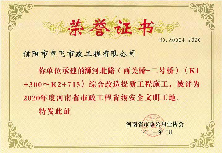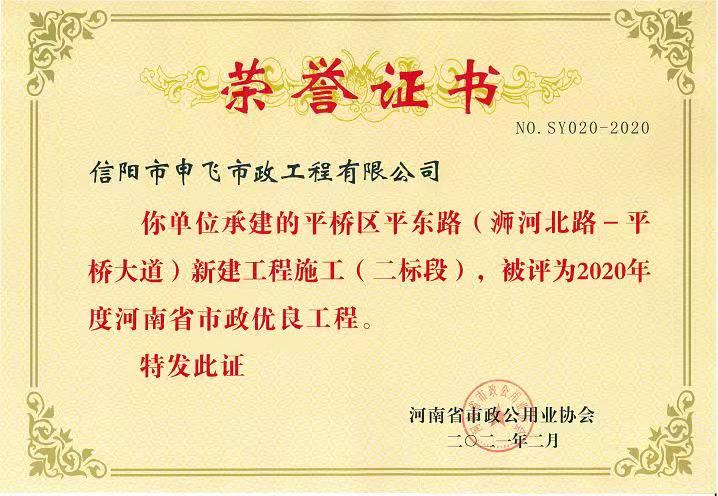 信陽地區(qū)疫情得到控制后,公司在市城管局的大力支持下,快速進(jìn)行復(fù)工復(fù)產(chǎn),全面完成安全、質(zhì)量、經(jīng)濟(jì)等各項(xiàng)指標(biāo)。在施工管理過程中,我們強(qiáng)抓各項(xiàng)工程精細(xì)化施工管理,著力在施工安全、施工質(zhì)量、施工進(jìn)度上下功夫,全年無一起安全責(zé)任事故發(fā)生,施工質(zhì)量合格率100%,再次榮獲“河南省市政公用優(yōu)秀施工企業(yè)”、“河南省市政公用質(zhì)量管理先進(jìn)企業(yè)”、“河南省市政公用安全管理先進(jìn)企業(yè)”等榮譽(yù)稱號。